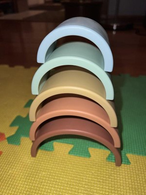 This is not your average stacker, the rainbow shape is great for developing brains and hands to figure out. We've had lots of fun trying it out with different configurations, just wish the colors were a little bolder.