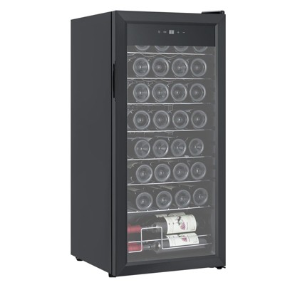 The Ivation Freestanding Compressor Wine Cooler fits in any room with its beautiful, black exterior design. Arrange your unit how you like by using the removable shelves. Adjust the cooling process if needed with the easy-to-operate temperature control. The sturdy seal, dual-pane, smoked glass door seals tightly to maintain the ideal temperature; Blocks UV light & locks out moisture.