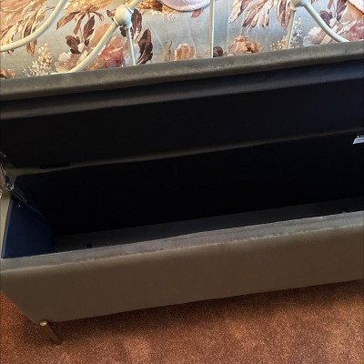 Love this Ivy Upholstered bench! It goes perfect at the foot of my bed and who couldn’t use extra storage to boot! I keep extra linens for our bed in this space and it’s just what my bed needed to dress up my space. The velvet is extra soft and the padding adds a needed comfort to your toosh after a long day.