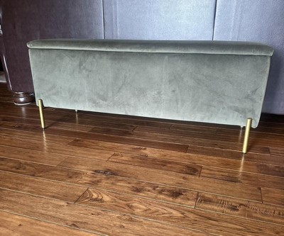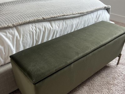 I love the new addition to my home. The green is gorgeous and this is super sleek and modern. I have it at the bottom of my king sized bed and it looks amazing. There is also a ton of storage space. Looks very expensive!