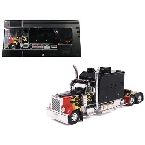 Experience the captivating allure of the 2002 Peterbilt 379 with this 1:43 scale diecast model by IXO PCT. Featuring a sleek black finish adorned with striking flames, this replica embodies the essence of customized trucking culture. Encased in an acrylic box with a window display, rubber tires, and a sturdy plastic base, this model highlights meticulous attention to detail and accurate 1:43 scaling. Ideal for collectors and enthusiasts who appreciate the blend of power and personalization, this model pays tribute to the unique style and craftsmanship of custom Peterbilt trucks, making it a standout addition to any collection or display.