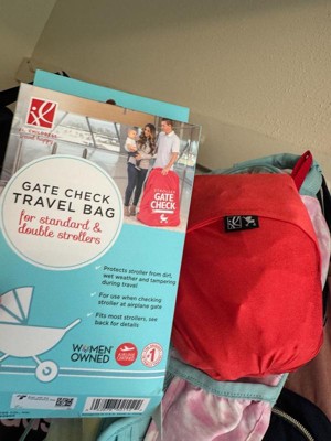 Use this handy, compact travel bag when gate checking a standard or double stroller to protect it from dirt and germs. The bright red color and large graphics easily identify your item for return to gate. Fits and covers most standard and double strollers easily with draw string closure and adjustable lock. Stuffs quickly into attached pouch for traveling convenience. Compact to fit in travel bags. Features two webbing handles for easy lifting and personal identification box. Fits baby trend sit 'n stand, peg perego, phil and Ted's, Quinny buzz, bob single Jogging strollers, Graco meteorite, Snug rider and duo glider, Bugaboo, Joovy, Chicco, Combi and Combi twin, Malaren and Malaren twin, baby planet and more. Not recommended for baggage check. From the Manufacturer Use this handy, compact travel bag when gate-checking a standard or double stroller to protect it from dirt and germs. The bright red color and large graphics easily identify your item for return to gate. Fits and covers most standard and double strollers easily with draw-string closure and adjustable lock. Stuffs quickly into attached pouch for traveling convenience. Compact to fit in travel bags. Features two webbing handles for easy lifting and personal identification box. Fits baby trend sit 'n stand, peg perego, phil and Ted's, Quinny buzz, bob single Jogging strollers, Graco meteorite, Snug rider and duo glider, Bugaboo, Joovy, Chicco, Combi and Combi twin, Malaren and Malaren twin, baby planet and more. Not recommended for baggage check.
