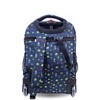 J World Sunny is a lighter rolling backpack with all the essential features! Sunny rolling backpack is lightweight, smaller version of Sunrise rolling Backpack. The backpack features all the essentials that J World Rolling Backpacks have at more economical price point. Convertible wheeled backpack offers the load carrying ability of a rolling bag with wheels and the portability of a school backpack. The spacious main compartment provides plenty of room for textbooks and notebooks and the front pocket has an organizer for pens, pencils, other stationary accessories and keys. Rubber bumper holds up to dragging over curbs and up stairs. No more frayed bottom on your kids rolling backpack! The recessed aluminum handle can be adjusted accordingly with shoulder straps that can be tucked in. With Large rubber backpack wheels roll and turn effortlessly on sidewalks, paths and airplane aisles. Corner mounted wheels provide extra stability.