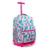 Go traveling, back to school, or to a sleepover in style, with your belongings neatly stowed in the J World Sunrise Rolling Backpack. The versatility of the Sunrise Rolling Backpack allows for it function as both carry- on luggage that will fit under the airplane seat or overhead compartment and a strapped backpack for students. It has fully functional wheels that are both soft and noiseless that allows for a controlled motion. Organize all of your belongings with a front pocket equipped with a pencil holder, key fob and mesh pocket perfect for storing items that can be easily accessed. For the people on the go in need of hydration, it has side mesh pockets that are ideal for storing water bottles and various other drink containers.