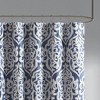 Add a touch of class to your bathroom with our Madison Park Odette Jacquard Shower Curtain. This luxurious textured shower curtain flaunts a gorgeous silver damask medallion design on a stria navy jacquard ground that adds rich texture and dimension to the lavish look. Measuring 72x72", each shower curtain is finished with 12 button holes on top making it easy to assemble hooks and hang onto rod (hooks and rod not included). To better preserve this beautiful shower curtain, a water repellant liner is highly recommended and can be purchased separately (liner not included). Machine washable for easy care; complete the collection with coordinate matching bedding, alas available and sold separately.Product Details72x72"1 Shower Curtain:72"W x 72"LMaterial100% Polyester Jacquard