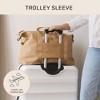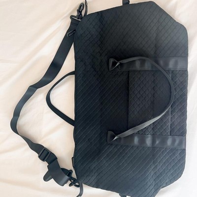 When it first came and was all wrapped up it seemed very small & I was worried it wouldn’t be as spacious as I had hoped. But luckily that is not the case - this bag is MUCH bigger than I thought it would be! I love the diamond detail on this color, plus the fabric is very soft, but also seems durable enough to take with me on the plane without snagging. There are also so many pockets to help with organizing & a suitcase sleeve to slide it over the handle while walking through the airport. 👏🏼 The bottom of the bag is a black leather, so you can set it on the ground without worrying that it’s going to get dirty too. To be honest I have no idea what the button snaps are for on the sides, but the rest of the straps (removable shoulder straps!!) & handles seem like they are super great quality! Overall, I love this bag! I’m so excited to use it on weekend trips to visit family!