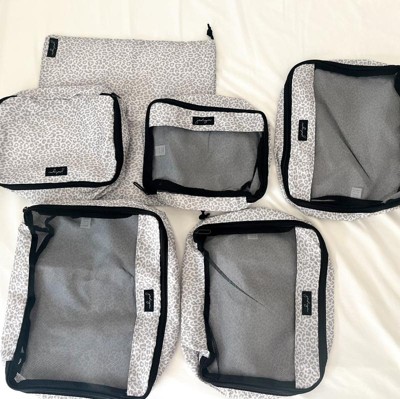 I love this packing cube set! It has all you need to keep your things organized for a trip. It has a variety of sizes for all different clothing types (pants/tops, undergarments/socks, swim+coverups etc.) I also LOVE the shoe bag keeping everything else in your bag clean and smell free! Plus the print is so cute! Coming from someone who loves to be organized these are the best! A definite game changer for travel.