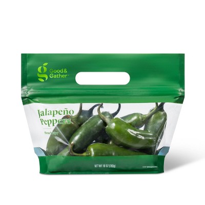 A bag of Jalapenos is perfect for adding a little bit of heat to your favorite dishes. This package of jalapenos contains 10 ounces of jalapeno peppers that just need to be rinsed and cut to enjoy. Jalapenos make a great addition to dishes like tacos, fajitas or nachos, but are also tasty sprinkled on top of salads, chili or soups. They're also delicious diced and added into baked goods like cornbread or biscuits. For those who really enjoy the taste and heat of jalapenos, the crisp jalapeno peppers even make a bold snack eaten on their own straight out of the package.