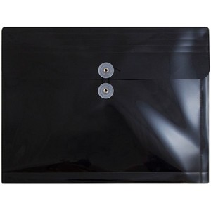 JAM Paper Black Letter Booklet Plastic Expansion Envelopes with Button and String Tie Closure are great for all letter sized documents that you need to keep safe and organized. At 9.75in x 13in (about 10 x 13 inches) in size, these envelopes can handle all of your important papers. Each one is made out durable, flexible plastic, features a straight flap opening and has a secure two button string tie closure. With its jet black color, this envelope has an appearance of professionalism and ensures that your documents will never been seen from the outside. Protect your documents from dents, tears, and bending while they sit in your office or get transported from place to place. This pack includes 3 envelopes. Size: 9.75in x 13in | Color: Black | Quantity: 3