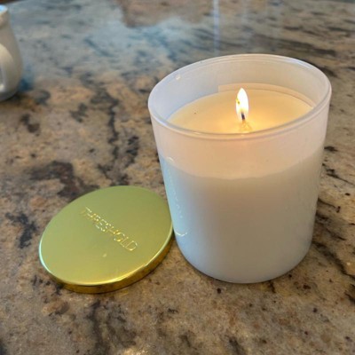 This candle is the perfect size for a kitchen island. It has a minimalist vibe to it with only a sticker on the front with its name. The smell is really mild. In fact it burns for a while before you can even detect any fragrance. It says notes of vanilla bean and musk and I would say that’s accurate . It comes with a gold lid for protection when it’s not use or storage.