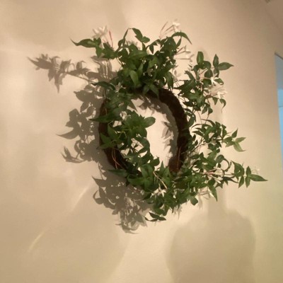 [This review was collected as part of a promotion.] This green jasmine leaf reef is literally the best addition to my space as it adds so much greenery and brightness to the room. I tried placing it on my exterior door and also inside my home on my bathroom barn doors that are white and the green up against the white, especially a barn door looked so elegant and modern chic.