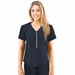 JEFFRICO Scrubs For Women Short Sleeve Zipper Front V-Neck Top 2 Pockets - 1 of 4