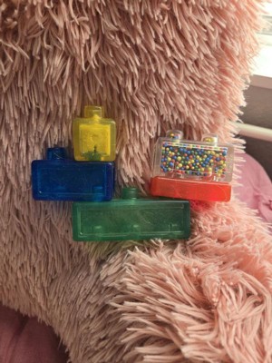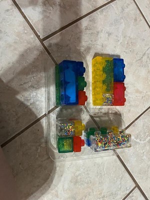 [This review was collected as part of a promotion.] They are filled with air, sand or beads and work great for my very sensory oriented toddler. You can easily build them like you would a classic plastic lego piece and if you have dogs and are worried about hair, they rinse clean easily. Unique, durable and great value toy for sensation seekers.