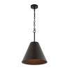 Elevate your space with the Jenner iron pendant. Measuring 15 inches, its oil rubbed bronze finish offers a timeless appeal that blends seamlessly with various decor styles. Crafted from durable iron, this pendant light embodies a sleek and modern design that brings warmth and sophistication to any room. Its versatile look makes it perfect for kitchens, dining areas, or entryways, adding a touch of elegance wherever it is placed. The Jenner pendant is not just a lighting fixture; its a statement piece that enhances the aesthetic of your home with its charming and understated presence. Illuminate your world with the refined elegance of the Jenner iron pendant.