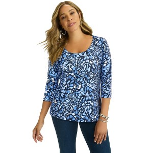 The Jessica London women's plus size Stretch Cotton Scoop Neck Tee is the perfect way to top off any look with three-quarter sleeves for season-spanning style. The straight silhouette offers a polished and figure-flattering look that eases over dress pants, skirt, jeans and capris.