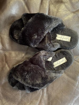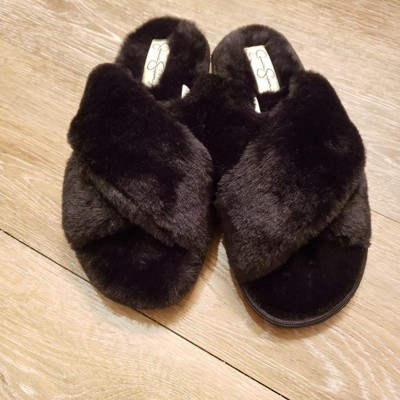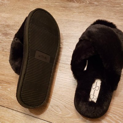 Jessica Simpson Womens Cross Band Plush Slide Slipper Slide