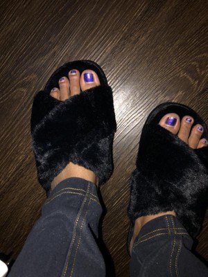 Jessica Simpson Womens Cross Band Plush Slide Slipper Slide - 1 of 4