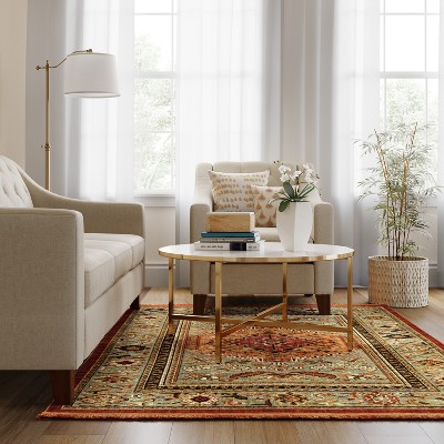 Freshen up your floors with the vintage style Jewel-toned Woven Rug by Threshold™. A modern twist on traditional oriental style area rugs, this on-trend area rug is the perfect blend of old and new style. Available in multiple colors and sizes, this flatwoven style rug will easily tie together your room's modern, bohemian or farmhouse style decor. It features a non-slip latex backing to stay in place without bunching or wrinkling. Easy to clean, this low pile rug is ideal for use in a variety of areas within your home, including the living room, bedroom, home office or den.