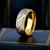 Strike the perfect balance between modern edge and timeless luxury with our 8mm Gold IP with Gray IP Notched Design Stepped Tungsten Carbide Wedding Band. This comfort-fit ring features a sophisticated blend of brushed gray ion plating accented by warm gold IP stepped edges, enhanced with precision notched detailing for a contemporary architectural flair. Designed for grooms who value structure, style, and substance, this piece is as enduring as your commitment.