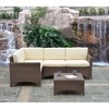 This is the perfect outdoor set for any outdoor space, you can still enjoy a cup of coffee under the sun, or have a few drinks with friends! The versatile design allows it to be rearranged into different configurations for your need and for special event. Engineered all-weather synthetic wicker to mimic the natural look and feel of natural wicker. Exclusive design and skilful weave patterns for added strength and durability. The rich brown color provides a premium outdoor look.