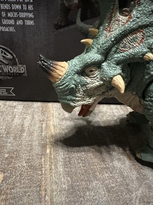 [This review was collected as part of a promotion.] Sinoceratops is the dinosaur that licks Owen in Jurassic World movie when he is paralyzed. That was a fun and scary scene, so this toy is enjoyable as a memory of that part of the movie. It's fun that we get to play with him. I also like that the broken horn is able to be removed and replaced with another horn. This dinosaur is posable which is very cool and makes imaginative play that much more fun. The dinosaur comes in a very neat box and is well packaged. The tail does need to be assembled.