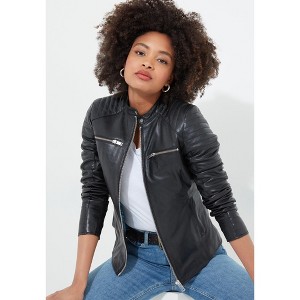 Everyone needs a black leather biker jacket in their closet, and here's your new favorite. Featuring all the authentic details, we’ve elevated ours with quilted sleeve detailing and edgy zip pockets. Super versatile and easy wearing, you can dress it up or down and style it to match your aesthetic.