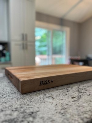 [This review was collected as part of a promotion.] This thing is huge! I love how the maple wood looks and how it’s an actually reversible cutting board and you can use both both sides of this board , and then clean ! Clean it using the cleanser it comes with and you can also buy on their website the John Boos maple wood oil cleanser 👍this oil is actually quality and top notch wood cutting board cleaner ! Best I’ve ever used since I received this John Boos Wood End Grain Cutting Board my family and I have been using it literally for everything it’s the best thing on larger counter tops like we have. They also have different sizes I just opted for a rather larger size and I can use it for literally all and any type of big or small kitchen prep work it very versatile with the grips on the sides of the board, this cutting board is a very quality maple wood, it can be used for either small or large get togethers this has been used by my family already for the grill ; I know my family and I will be using this a lot this summer for barbecue and cookout! as this cutting board is an essential tool for family! Highly recommend you go look 👀 at their website! If your a family or four or more this exact cutting boat is everything you’ll need and more !