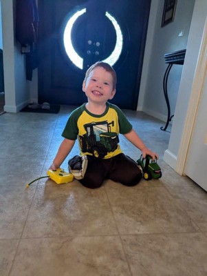 [This review was collected as part of a promotion.] The John Deere Remote Control Johnny Tractor is a hit with my child, who loves its bright design and easy-to-use controls. It's durable enough to handle rough play and works well on both carpet and hard surfaces. The battery life is decent, providing plenty of fun before needing a replacement . Overall, it's a great introductory remote control toy for young tractor enthusiasts.