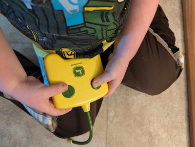 The John Deere tractor was and still is a big hit for my little man. The remote is perfect size for his tiny hands and super easy for him to control. The tractor is very durable as well, made of great quality. He feels like a Big Boy when he controls the tractor!! Super fun and easy!