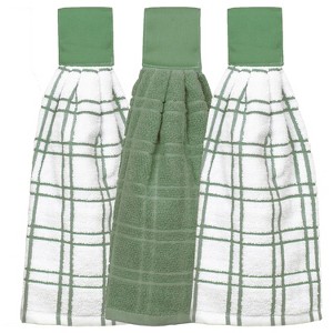 John Ritzenthaler Co. Ritz 3-Pack Solid and Multi Check Tie Towel Set, Juniper