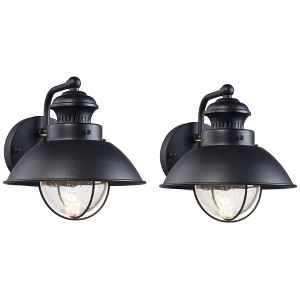 John Timberland Industrial Outdoor Wall Light Fixtures Set of 2 Black Metal LED 8" Seedy Glass for Exterior Barn Deck House Porch