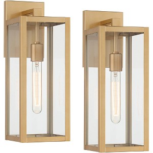 John Timberland Titan Modern Outdoor Wall Light Fixtures Set of 2 Soft Gold Rectangular Frame 17" Clear Glass for Post Exterior Barn