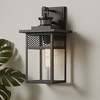 This understated, casually modern outdoor wall light is presented by the John Timberland® brand, making it the ideal choice to bring some welcome illumination to the dark night. Textured black allows this fixture to graceful adapt to your home's exterior, with a mesh pattern contributing visual interest. This outdoor wall light uses a single bulb to bring much-needed brightness. Dual-bright design means the light turns on at 25% brightness and goes to 100% when motion is detected. Two minutes after motion is no longer detected, the light will revert to low-level brightness.