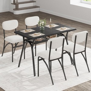 Jojoka 5-Piece Dining Table Set for 4,Kitchen Table with 4 Chairs,Rectangular Dining Table with Storage Rack