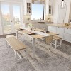 Jojoka Extendable Dining Table Set with 2 Benches & 2 Stools, Adjustable Large Kitchen Table, Space Saving Table Set for Small Space, Beige