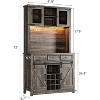 - 【Ample Storage Space】This versatile bar cabinet includes a spacious buffet and an upper cabinet. The upper section features 2 open shelves, complemented by four glass-doored compartments, while the bottom buffet is equipped with 2 barn door cabinets and 3 drawers.
