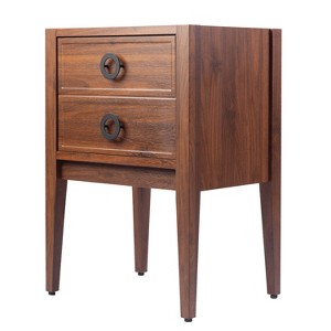 - Transitional dark walnut finish is complemented by ring pulls in a black finish