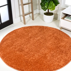 JONATHAN Y Haze Solid Low-Pile Orange 4 ft. Round Area Rug, Non-Shedding, Easy-Clean, Durable Synthetic Fibers