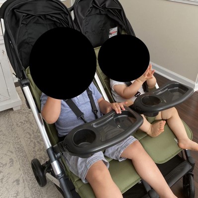 Great double stroller. Side-by-side lets both kiddos see out (great for zoo, etc). I like it & my twins love it. We use this over our other double stroller. Would definitely recommend! Pros: lightweight, easy to maneuver, folds very compact, super easy to fold, and it fits through doorways. Has kid trays, they’re removable, & the cup holder fits Munchkin & camelbak kid cups. Seats recline back pretty far & they recline individually. Cons: lack of parent tray; standard stroller wheels are good on pavement but not good on grass. I guess larger air-filled wheels wouldn’t let the stroller fold up so small, but honestly upgraded wheels would make this beyond perfect. Still a standout stroller. (This is not compatible with infant car seats - kiddos need to be old enough to sit up before using this stroller. We used Contours Elite double stroller while our twins were under 1 yr.)