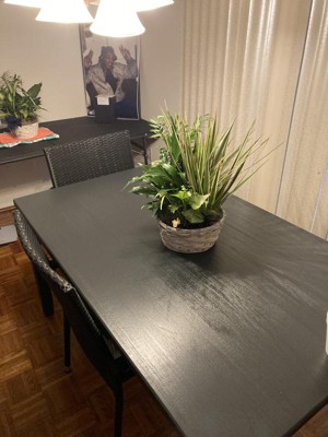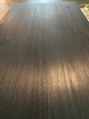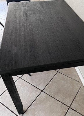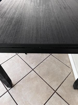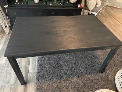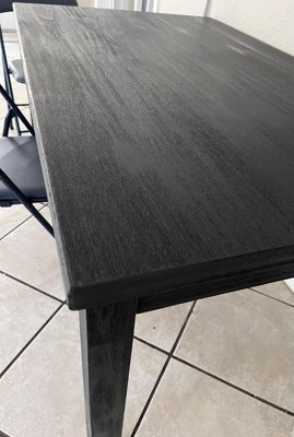 [This review was collected as part of a promotion.] This table is simply stunning in person! It is a very dark charcoal finish, almost black. It looks sleek and stylish. I love how the top is a little textured, I think it will be very forgiving if anything should ever scratch it. It was super simple to put together, I did it by myself! I have some cream colored chairs that I'm going to add to it, so it will be perfect. I highly recommend this table!