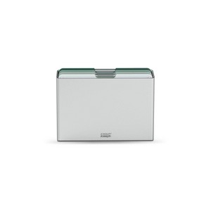 Keep all your chopping board needs beautifully organized with this sleek design. It features a slimline storage case containing four, large Color-coded boards each with knife-friendly, textured cutting surfaces on both sides and non-slip feet. The boards themselves can be easily removed from the case due to the smart angled design and their stainless-steel selecting bars. The case holds each board neatly apart, allowing air to circulate, and has non-slip feet on the base. Available in a range of sizes and case Colors.