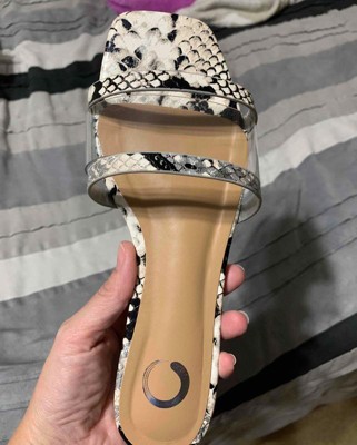 [This review was collected as part of a promotion.] These slides are comfortable to wear as they have padding in the sole. I am wearing the size 9 which is the size I normally wear and they fit good in the length and the width. They are a stylish summer sandal that can be worn to the office or out to a restaurant. I like the snake print and the clear panel that joins the straps. Super easy to pop on and go. Suitable for all ages. This item Felt true to size and the width Felt true to width. I received an incentive to write this review.