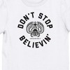 • CUSTOM DESIGN: Don't stop believin', logo and scarab with horn on white tee. A fun and expressive graphic tee for any fan.