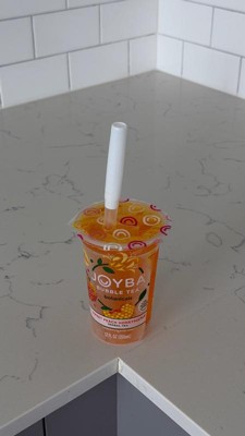 [This review was collected as part of a promotion.] I am very impressed with the concept of this boba tea! It has its own straw attached that is big enough to get the boba through. It has a pleasant floral, peachy taste with the occasional surprise of a popping boba. I would purchase this again and look forward to trying additional flavors.