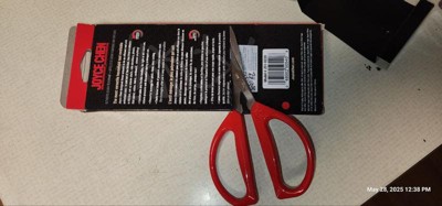 These have comfortable handles and are useful for multiple things. I got them anticipating using them as normal kitchen scissors but the box said they can also be used for plastic, fabric, even trimming shubbery. I had to make a precise cut on thin cardboard and they worked great and stayed sharp. Excited to keep using them!
