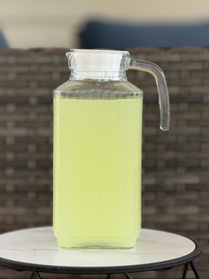 [This review was collected as part of a promotion.] This glass pitcher is both beautiful and practical. The clear design allows me to see the colorful drinks, while the sturdy handle and secure lid make pouring effortless. I especially love how the wide opening makes it easy to add ice cubes and fruit slices. Perfect for serving anything from fresh juice to iced tea.