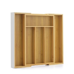 JoyJolt Expandable Bamboo Flatware Organizer - White
