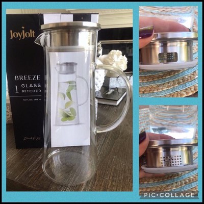 [This review was collected as part of a promotion.] I am in love with the modern and innovative design of this water pitcher. The spout having a side for regular pouring and a side with a strainer is so smart. I didn't have a proper pitcher for hibiscus tea. Now I do, and I'm so excited to share great drinks in the home with this.