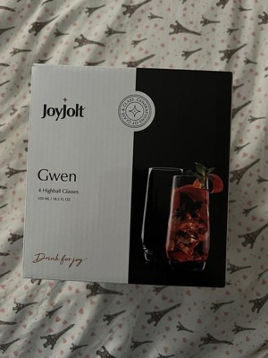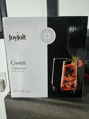 [This review was collected as part of a promotion.] I received this beautiful set of four highball glasses from Joy jolt. The glasses are 18 fluid ounces. They are beautiful and very well designed. They are lead-free crystal glasses. They are also 6 inches tall! Very nice for your favorite alcoholic beverage!