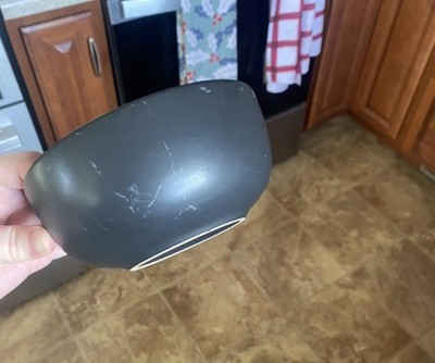 We're sorry to hear that the cream-colored set didn’t meet your expectations. Some stoneware may develop marks from metal utensils over time, but these can often be removed with a gentle baking soda paste. We appreciate your feedback and will share it with our team. If you have any further concerns, please feel free to reach out to us!